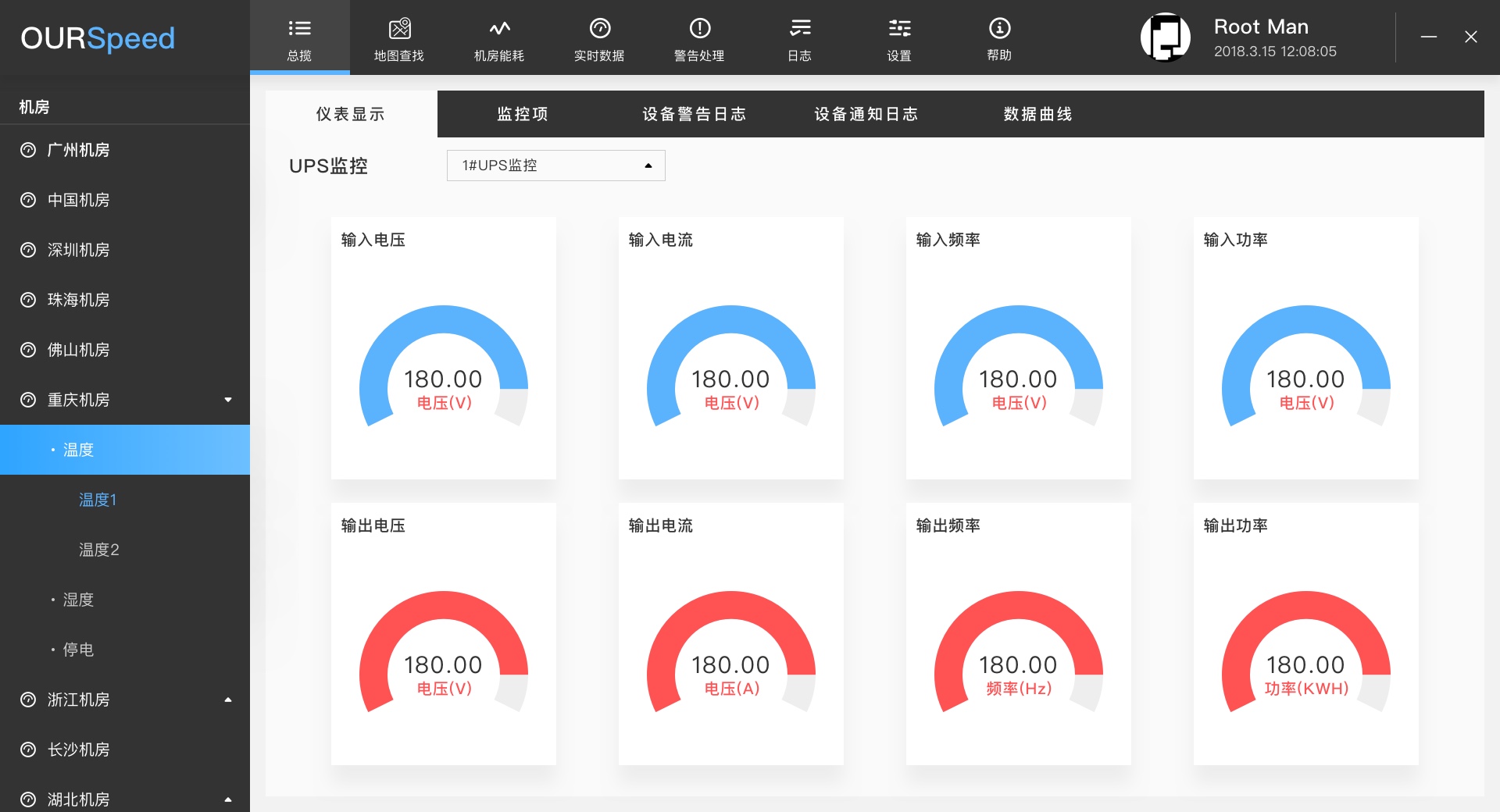 實時監視UPS整流器、逆變器、電池總電壓、旁路、負載等各部分的運行狀態與參數(能監測到的具體內容由廠家的協議決定,不同品牌、型號的UPS所監控到的內容不同)。